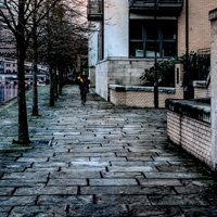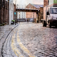 Walking amongst the renovated warehouses, the narrow streets, the docks and waterways, I can feel the uneven roadways through my shoes – the flagstones and cobbles – and watching my footing helps me make connections across the centuries with every careful step I tread. Then, in turn, my photographs reflect these connections, taken instinctively from a low(ish) point of view and focussing on these historic pathways.