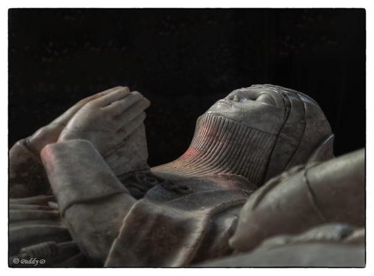 It's easy enough if you just want a general impression (as the image below) or if you simply view the effigy as an historical artefact – using a livery collar to provide evidence of affinity, for example, or the tomb chest as evidence for the number of sons and daughters. You can snap away in whatever manner best represents the task. But it becomes more complex if you view the effigy as a person – not as 'it' but as someone's partner, parent, offspring, friend. Then you're battling with the geometry, the angles, alignment, physicality of the situation – because there are few occasions in life when one is standing, in communication with someone who's lying flat on their back, about three feet off the ground (sadly one occasion is hospital visiting).