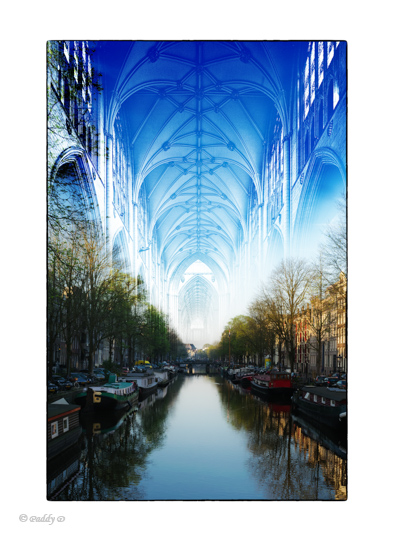 I’ve written about the idea behind this image on another occasion (HERE …) about my early morning walks in Amsterdam, when the geometry of the canal, the light at sunrise and the quietude had a church-like feel.