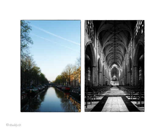 Diptych of Canal in Amsterdam and York Minster