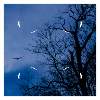 Red kites were successfully reintroduced to the Harewood Estate as part of a conservation programme almost 25 years ago, and it looked as if every bird in the ‘kettle’ – what a fascinating collective noun! – was monitoring our journey, as we drove north along the Harrogate Road recently. Their silhouettes drifted lazily, effortlessly across the clear, blue sky, inspiring me to create a cyanotype print a few days later, based on a digital negative from my back-catalogue.